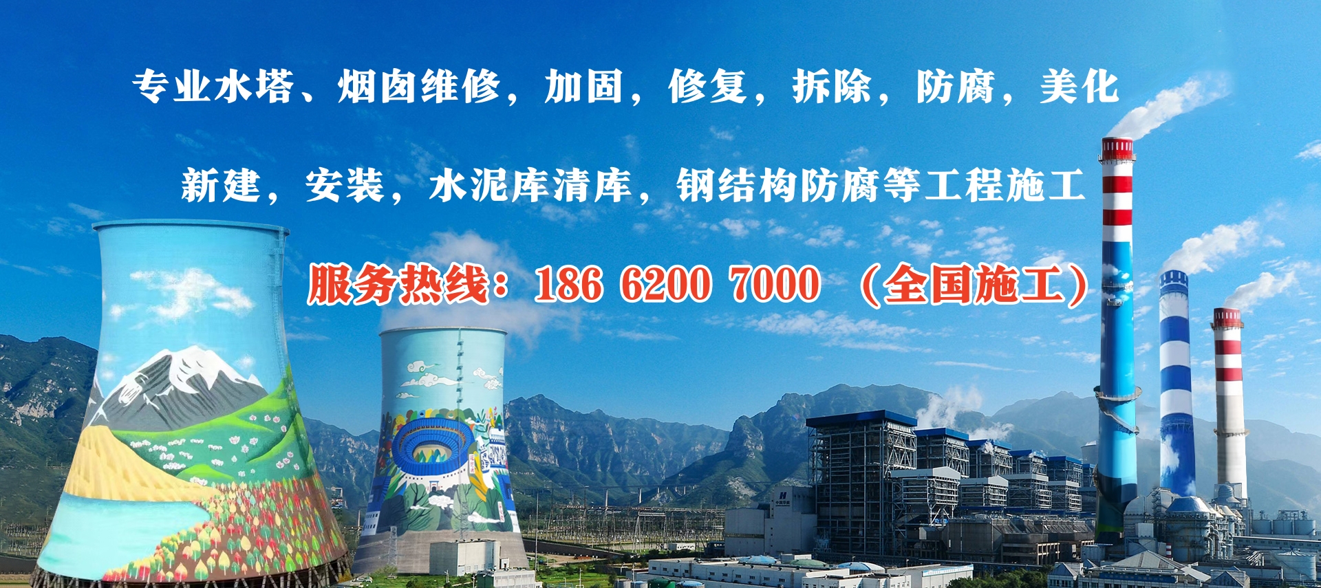 江蘇華電高空工程有限公司(全國(guó)施工)(工程熱線:186-6200-7000)我公司專(zhuān)業(yè)承接各類(lèi)高聳構(gòu)筑物(煙囪,磚煙囪,混凝土煙囪,水泥煙囪,鋼煙囪,水塔,冷卻塔,灰?guī)欤鄮?kù),筒倉(cāng),鋼結(jié)構(gòu),爐架,碼頭,電廠,化工廠等)拆除,維修,防腐,美化,改造,新建,安裝,加固,刷新,探傷,檢測(cè),脫硫,保溫,水泥庫(kù)清庫(kù),清灰,污水池防腐,鋼結(jié)構(gòu)除銹防腐,港口防腐,化工廠防腐,電廠爐架防腐等建筑工程施工的專(zhuān)業(yè)公司。